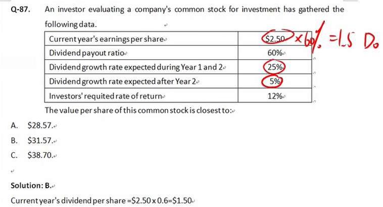 第87题:求PV时,为什么不算首年分红D0(即1.5),PV=1.5+1.5*1.25/1.12+......
