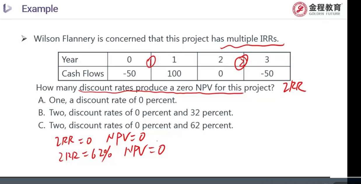 带入IRR=62%,使用金融计算机算出来NPV不等于0,是等于-0.0321,麻烦老师看一下