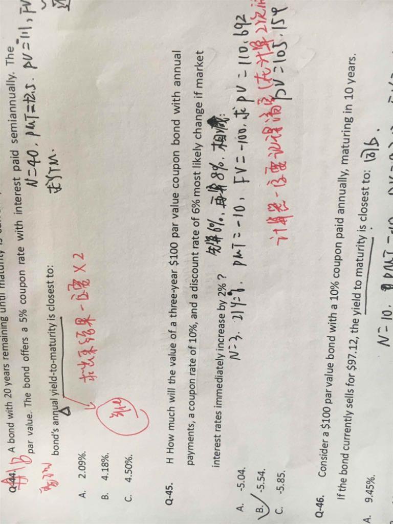 老师,做这种题目我在输入计算器时候,可以默认pMt和fv符号一致,pv与fv方向相反么。因为如果现在发行方和投资者不同的角度,这个符号是不一样的。回答了之后我还能追问么?谢谢45题