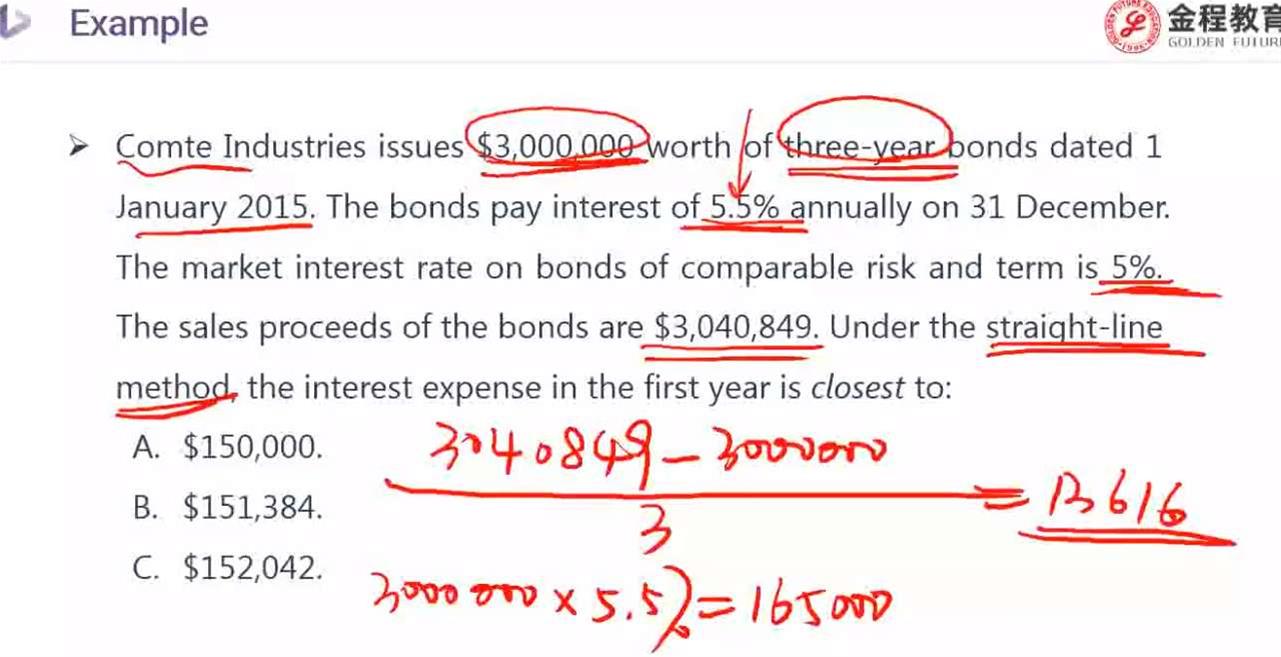 老师好,请问题目中问的是interest expense怎么区分是BASE中的A还是E中摊销的interest expense呢,如果是BASE中的A的话,算出来是选C