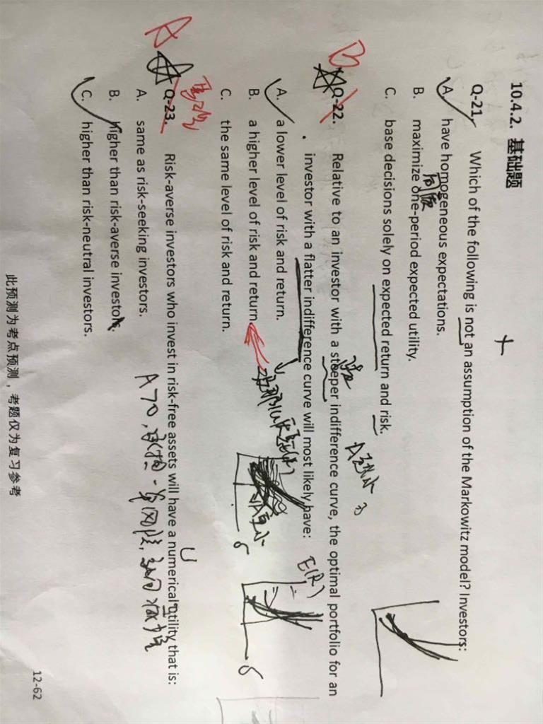老师,越平坦的话说明投资者没有那么厌恶风险,所以对风险的补偿也应该会小一些,应该选a为啥选b呢22题