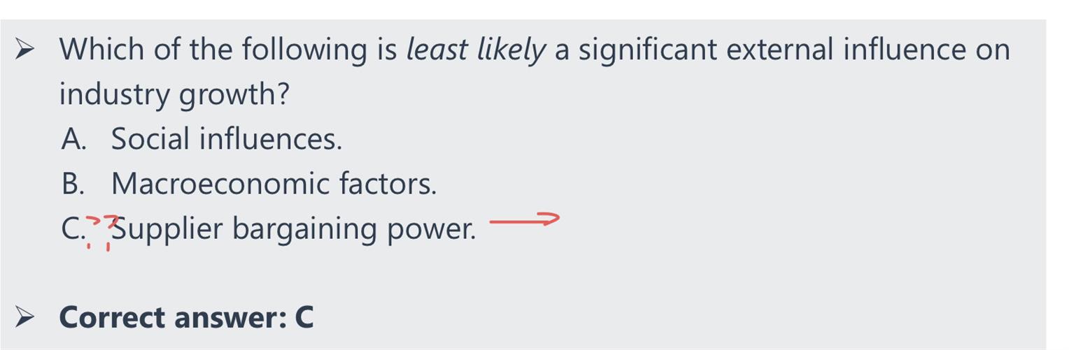 这道题不是问最不可能对行业增长造成影响的吗,为什么选C,C是对行业增长有影响吧