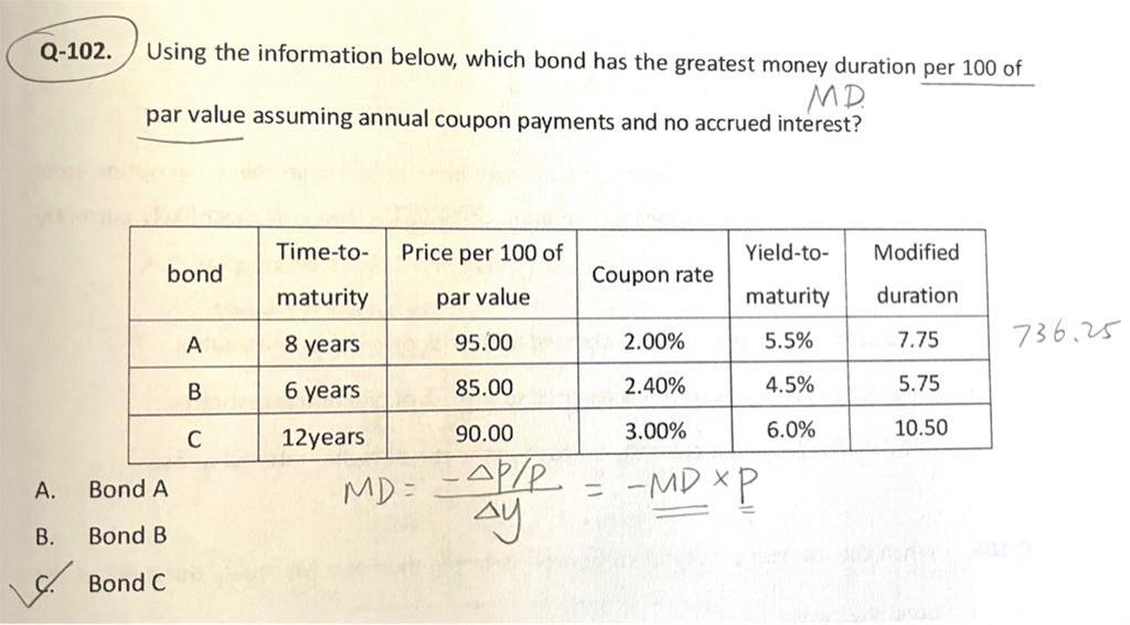 老师,我们money duration的公式不是modified duration*full price of bond吗?这里为何前面加了负号?(附图最底部部分)负号是任何时候都要加吗,还是看情况?具体怎么分辨?
