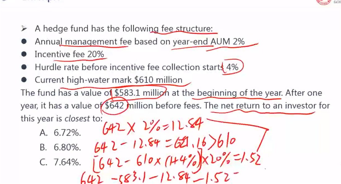 老师 这题中没有说明 管理费是net of 或者independent于激励费中,那我们是默认 就不算在激励费里了?