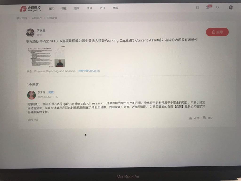 包含CFA一级传统在线课程、通关课程及试题相关提问答疑;