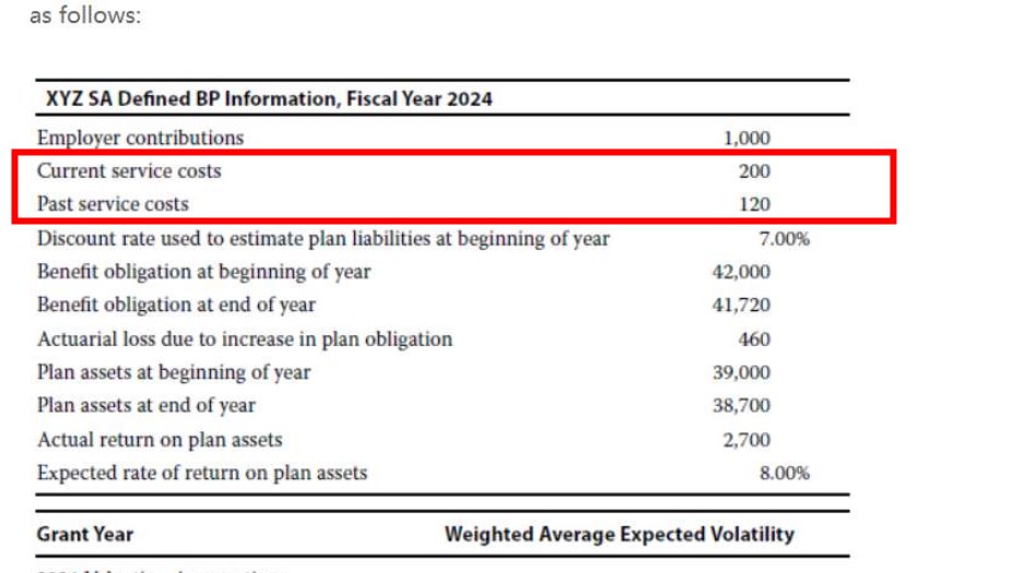 ①为什么这个案例题只有current service cost + past service cost?②如果是在B/S 中,进入operating cost又包含哪些?