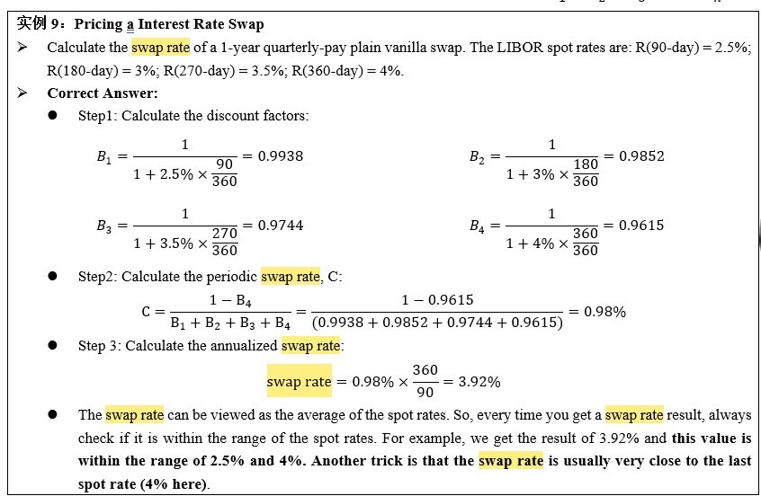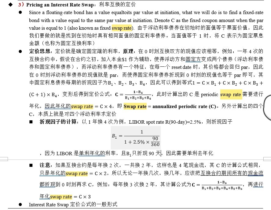 求这个利率互换的fix rate不就是求付息债的coupon rate么?用金融计算器,求出pmt,再用pmt除以par value就得到了这个fix rate,对不对?