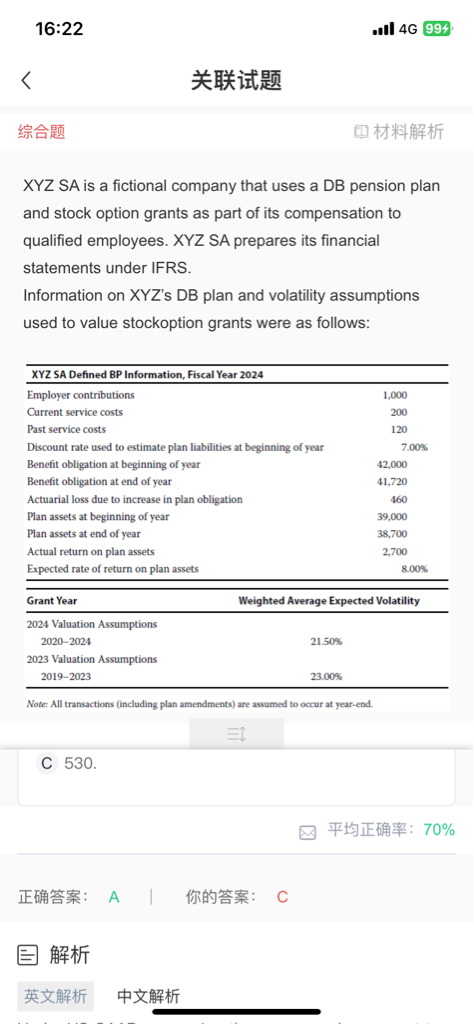 这题中如果先算plan asset下的benefit paid,再倒算benefit obligation下的interest cost,结果也是2940m吗?我是不是算错了?