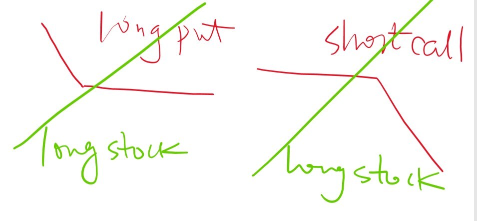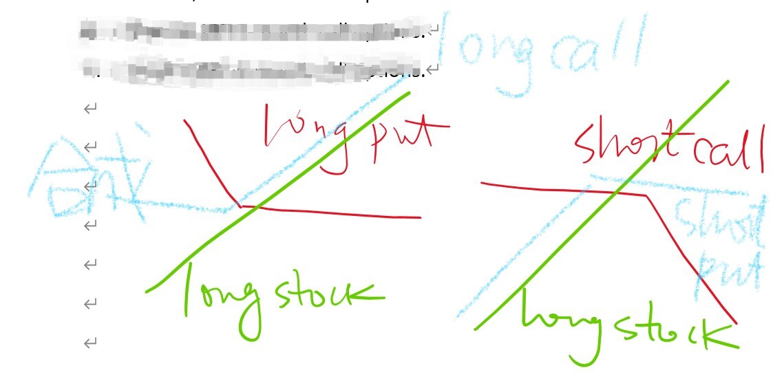 long put和short call是不冲突的,都可以对冲原有long stock的头寸