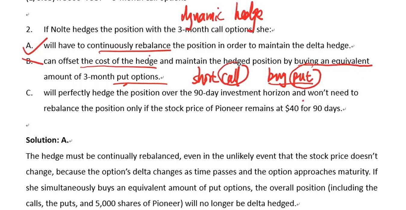 B 说的是If Nolte hedges the position with the 3-month call options, she can offset the cost of the hedge and maintain the hedged position by buying an equivalent amount of 3-month put options.