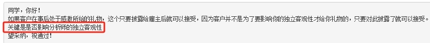 如果客户在事后处于感激所给的礼物,这个只要披露给雇主后就可以接受,因为客户并不是为了要影响你的独立客观性才给你礼物的,只要对此披露了就可以接受。