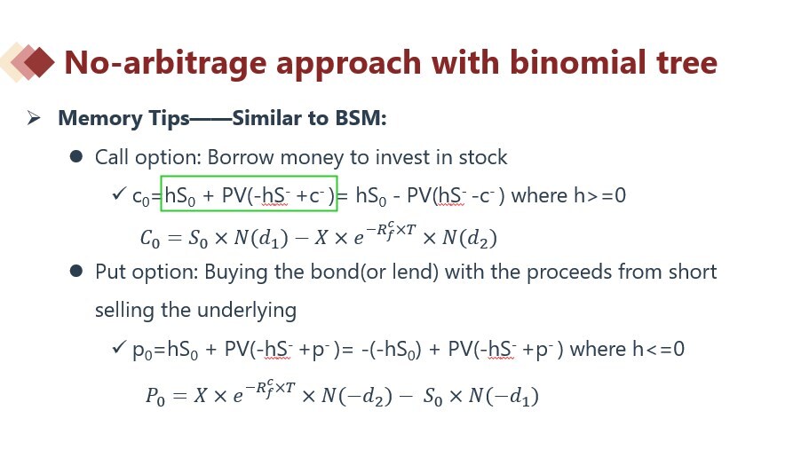 B的意思是,买入h份股票,做空PV(hS-c-)份债券