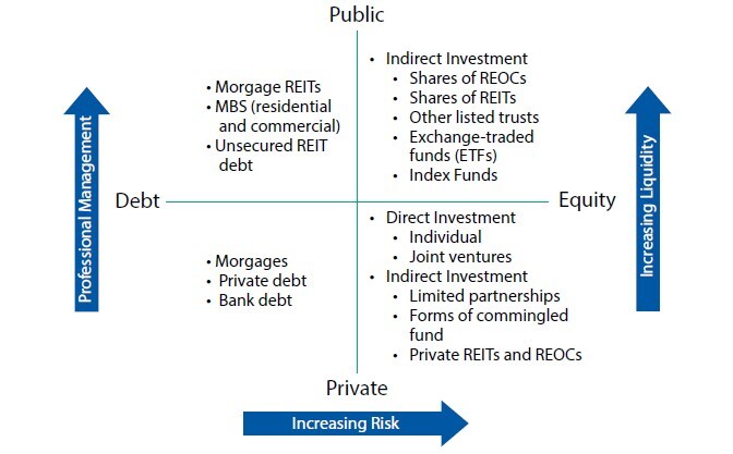 同学你好。房地产权益类投资包括REOCs、REITs等,投资的是房地产权益资产;房地产债务投资者例如MBS、与房地产有关的私人债务等,投资的是债务资产。