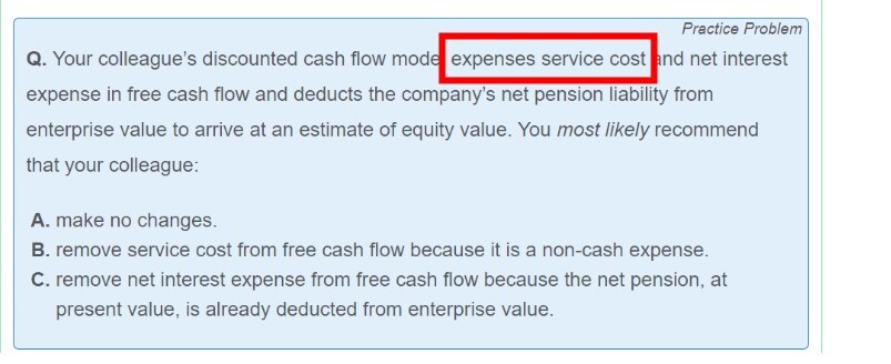 service cost需要被expensed,所以题干里是正确的,不用再调整。