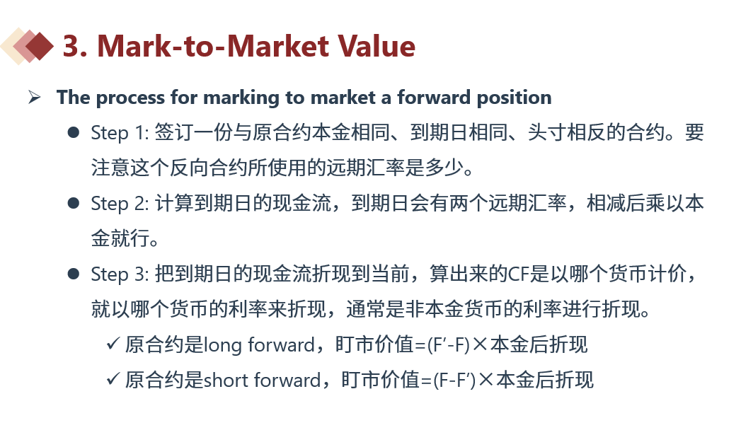 同学你好,mark the position中所说的那个position就是6个月前签订的short EUR forward,也就是原合约。那既然现在需要mark the position to market,就是要根据当前exhibit 2中的foward point来得出一个反向合约。Exhibit 2的数据是基于当前的,不是6个月以前的数据。