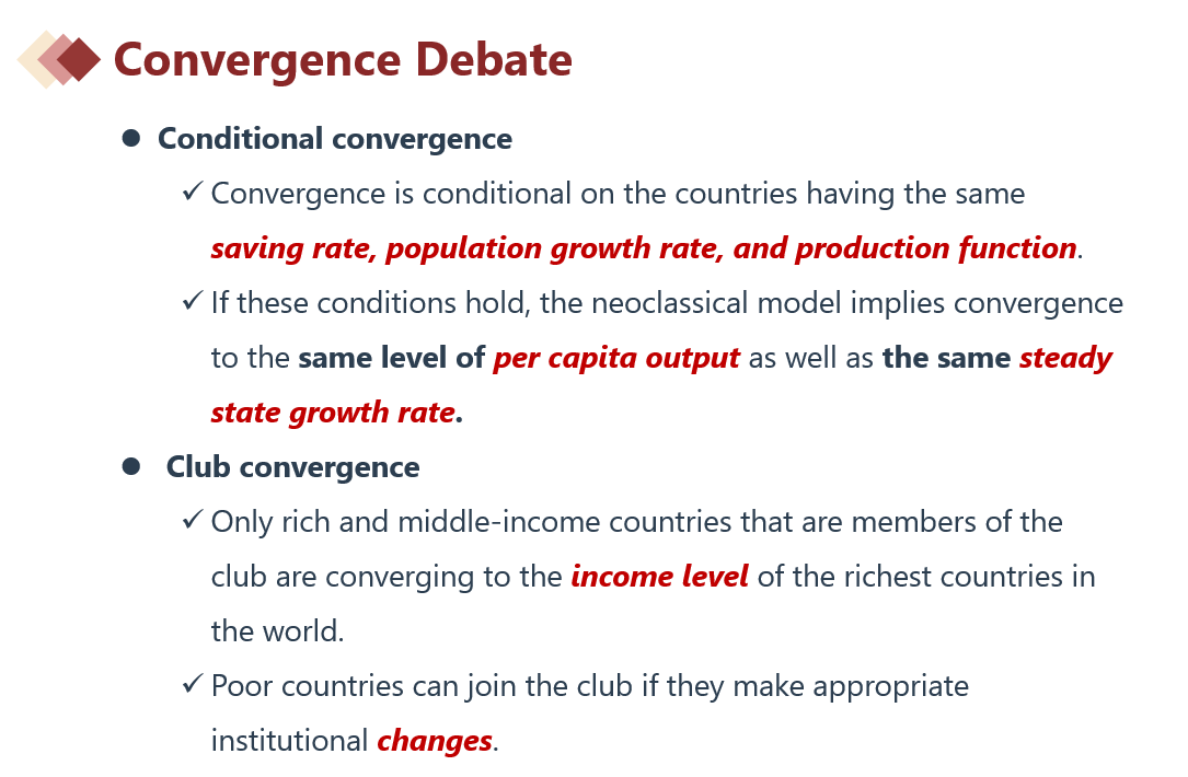 同学你好,由于两国有着相同储蓄率/人口增长率/生产函数,因此D国人均产出会趋近于E国。可以参考下图,这个是条件趋同,因为是当前满足了特定条件下才会产生趋同,而目前所满足的三个条件,恰好就是条件趋同所需要的前提。绝对趋同是无论在任何情况下,落后国家的人均产出最终会赶上发达国家,而这个就与本题情况不符合了。