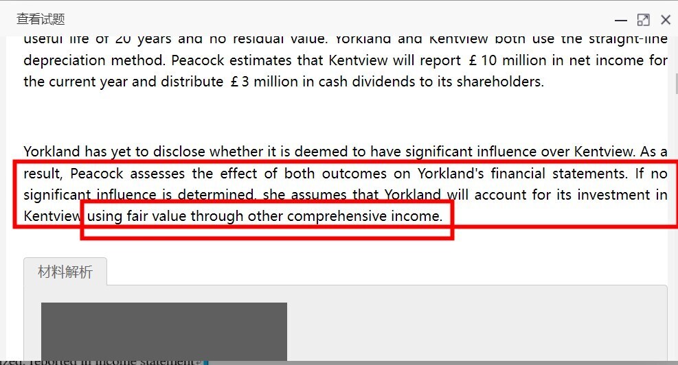 1)这里的第三题:If Yorkland is deemed not to have significant influence over Kentview, the income recognized in pre-tax profit and loss will be closest to的问题的三种不同情境下的处理方法请总结一下。2)为什么没有significant influence就一定不能选A,A的计算思路不也是没有significant influence的一种吗?