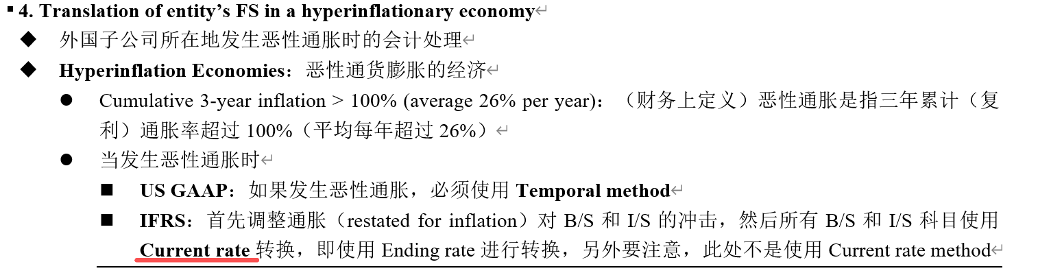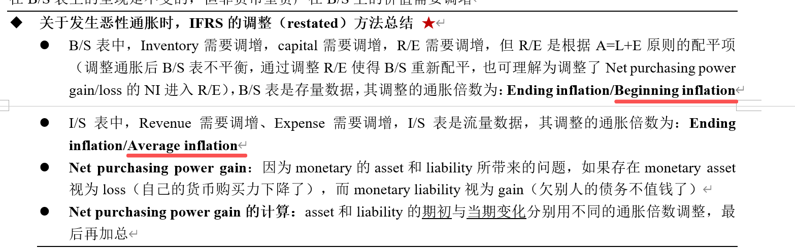 先是对I/S里的科目,用average 通胀,进行调整,调整结束后,再使用current 汇率,来转