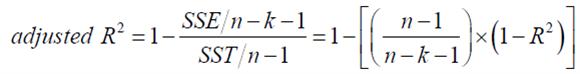 adjusted R^2,并没有你左边写的这种公式的写法,所以是错的。正确的我已经写在下面给你了。