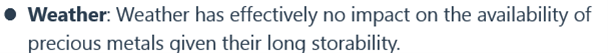 同学你好,因为对于贵金属来说,天气好坏几乎是没有影响的