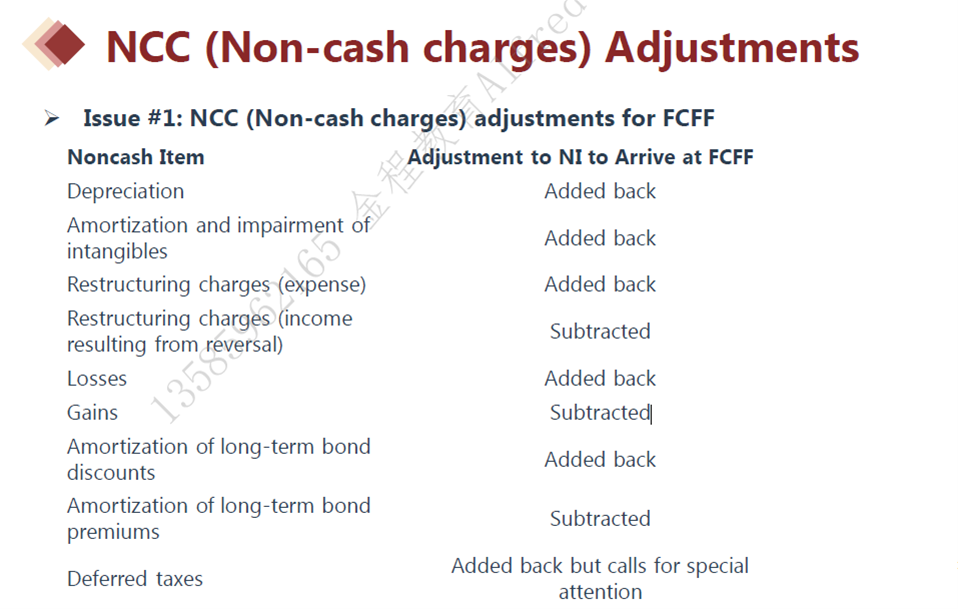 (1)在ncc中我们考虑的是处置固定资产的gain或loss。对于一个企业的经营来说,处置固定资产肯定不是其日常活动,也就是说处置固定资产的收益或损失是unusual item(但这部分gain或loss计入了net income中),应该从企业net income中扣掉。如果是gain应该减掉;如果是loss,应该加回。调整之后的net income能够反映企业正常的经营所带来的净利润。