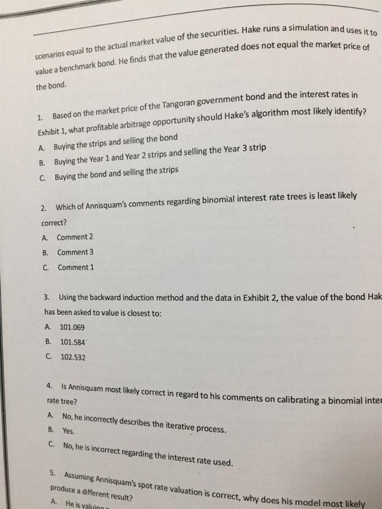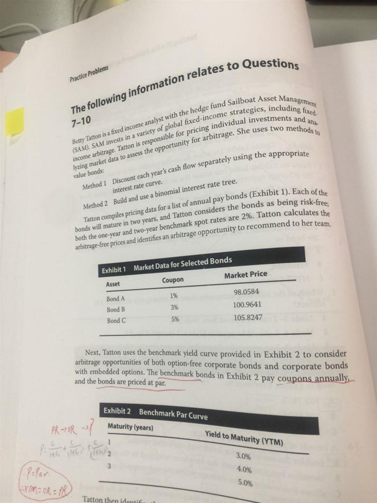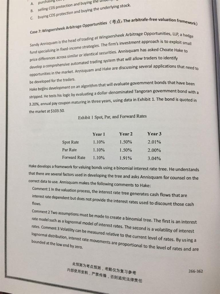 我今天翻了原版书。我是这么总结,题里说明了给的事benchmark(国债,年付息,par bond)的YTM(par rate),没给spot rate,那求spot rate再求P。