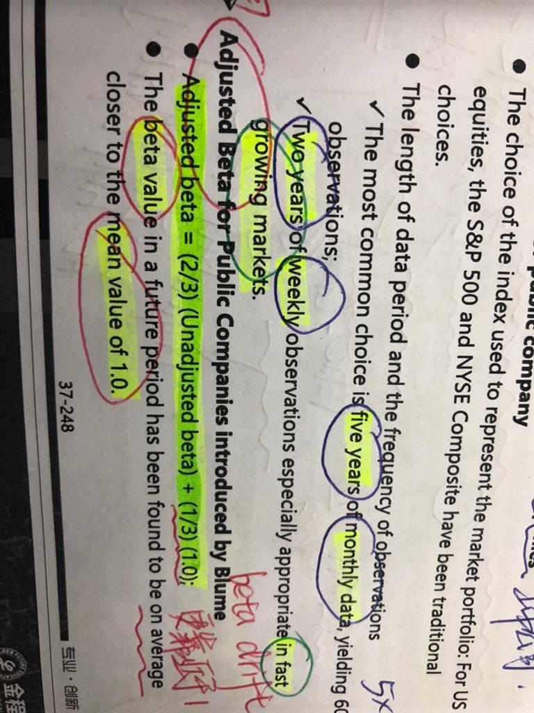 这里面给了三家公司,也给了每家公司的β值,计算的也都是各自的required rate of return,不涉及调整问题。