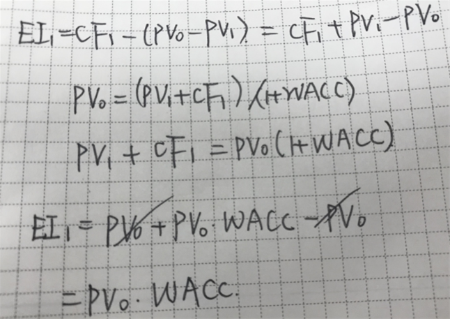 公司理财,***老师讲义第52页的例题,计算Economic income,***老师说,除了常规公式算法,还有第二种更直接的算法是,V0*12%就是EC了,结果是一样的,没看懂这个逻辑。如果V0*wacc就可以计算EI,那还要公式EC=CF-ED作什么呢?网课视频截图如下,***老师的算法2,我用天蓝色框出来了。