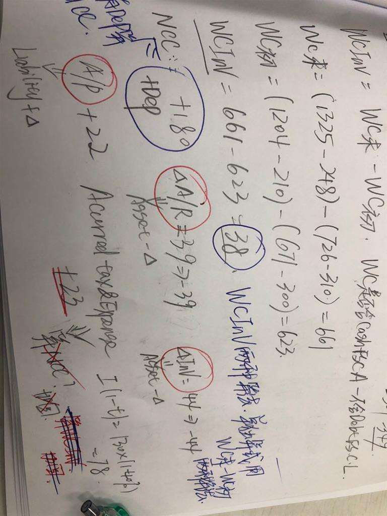老师 第2题中 利润表中的accrued tax and expenses算NCC 还是WCINV呢? 用WC末-WC初等于38,两种方法算数字比较,应该是把这个算成WCINV了,但是是不是NCC更合适呢?