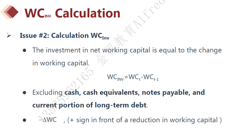 同学你好,这里恐怕是你记错公示了。老师上课应该讲过这个公式:working capital=不包含现金的current assets-不包含付息债务的current liabilities。
