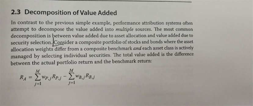 同学你好,这是因为,这个公式有默认假设,因此如果我组合和我的基准在某个资产上选股也不同的话,就不能用这个公式了,根据表格,我组合的收益和基准是不同的,因此说明选股上两者有明显区别,所以你问的这个公式是不适用的。