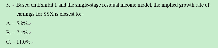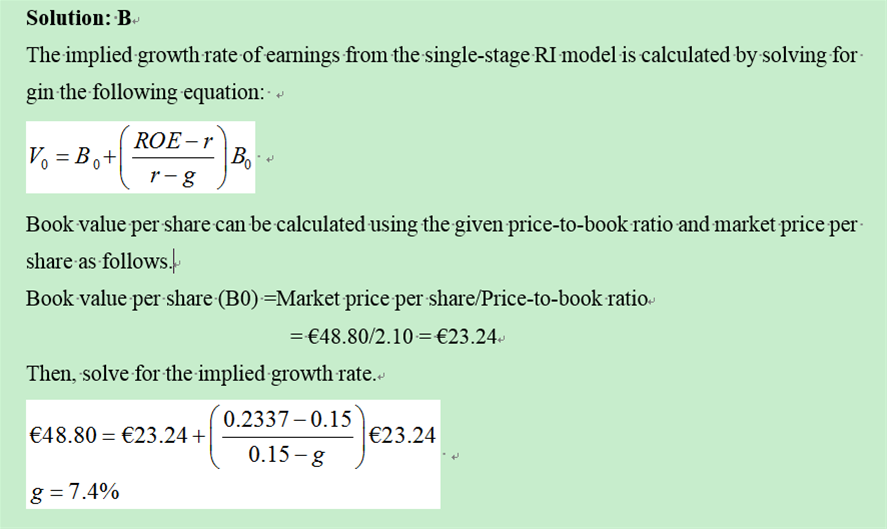 这里注意一个单词,implied,这个是说,假定当前市场价格是fairly valued,那么计算与之对应的一个g,所以这里的假定变了,与前一题不一样。