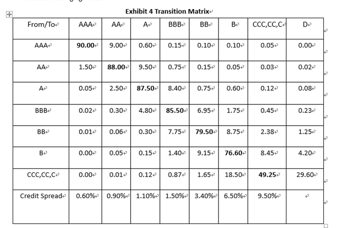 同学你好,叫做信用转移矩阵。我找一个图你看下把。