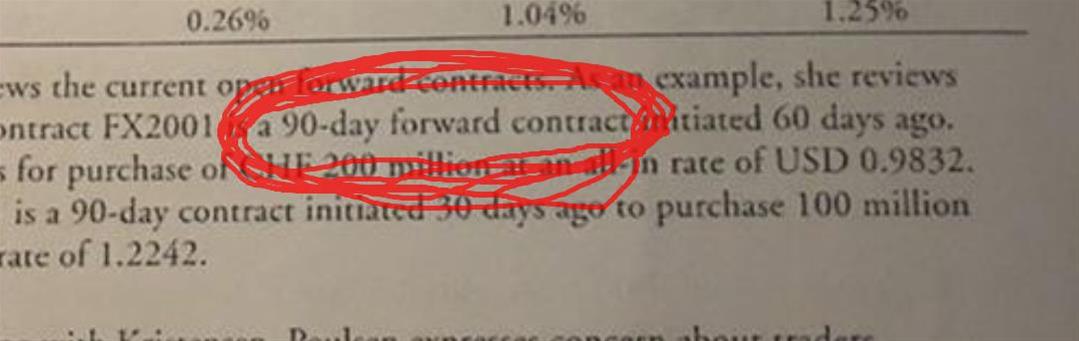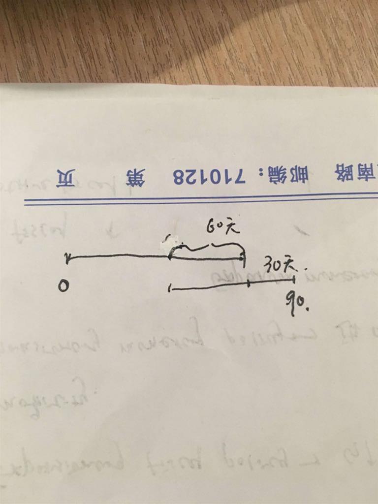 同学你好,站在现在这个时点,他说是60天之前签订了一个90天的合约,那距离到期日还有30天。