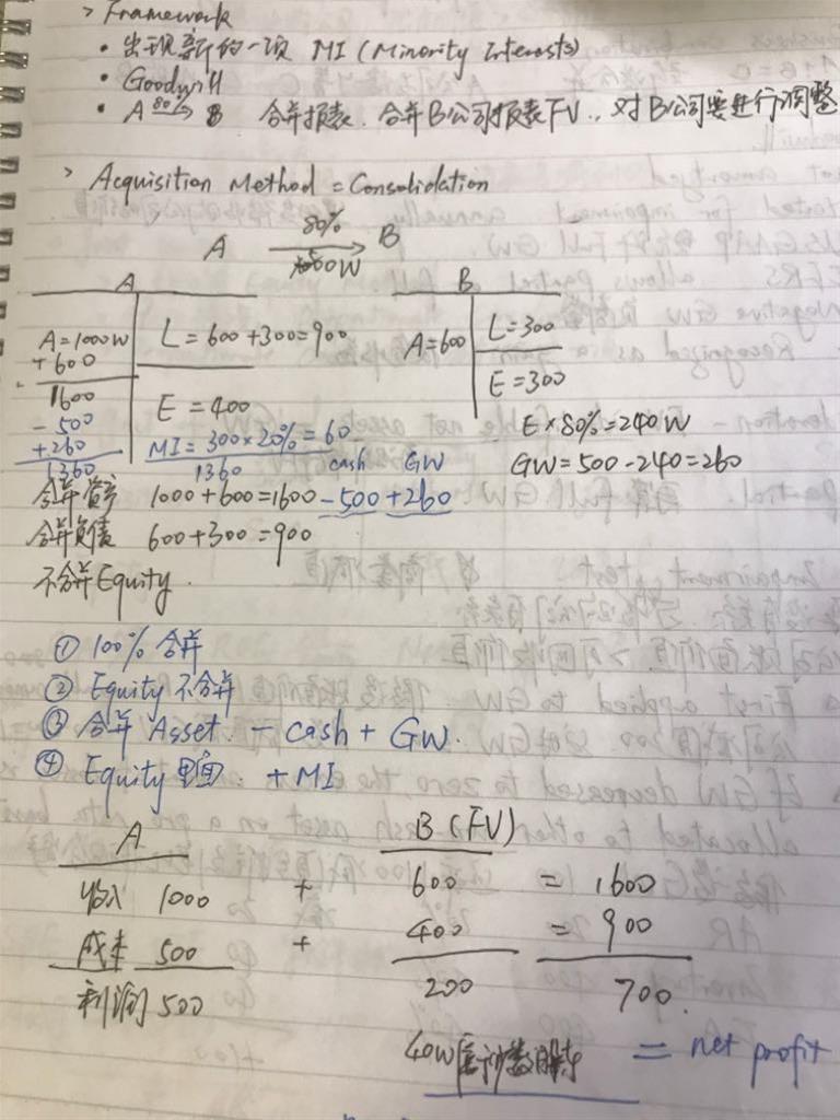 在acquisition method中,算收购公司的合并后资产,资产相加后-收购用的现金再减去GW。这里的GW是full 还是partial?