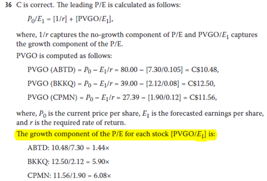 你说的非常对,题目也是比较不同股票的PVGO/E1从而得出结论的。截图如下。