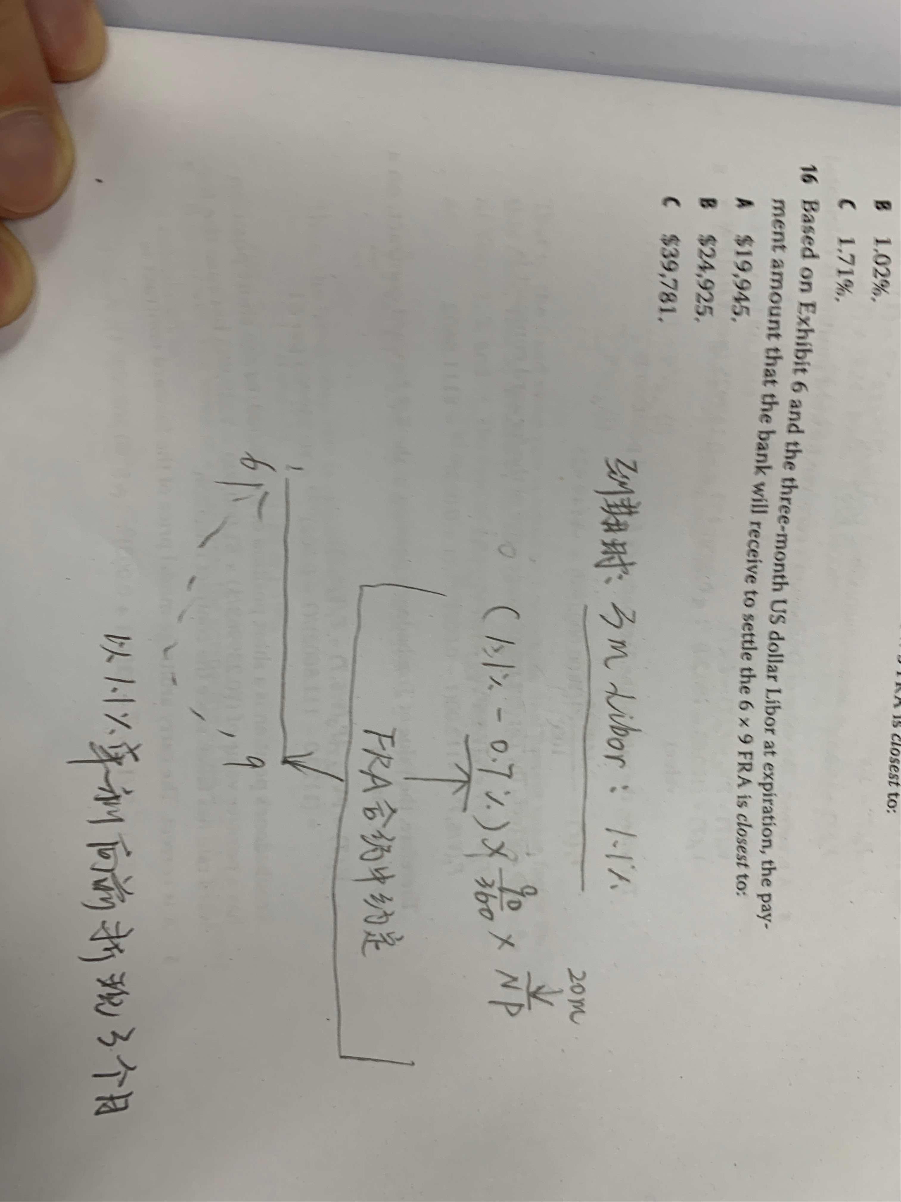 老师,这道题表7提供了如下数据,但是16题干中所说three month us dollar libor 是指到期前三个月的LIBOR吗?根据图中所示表格,如何计算16题,请指教,谢谢