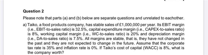 谢谢老师,这道题我反复读也觉得应该这么算,但是如果不减20万的working capital的话,他的估值就有二百多万,毕竟题干里有写working capital margin stable。所以我其实不是非要算出这一道题的答案,就想搞清楚这里的working capital到底该不该减,毕竟算FCFF总归要考虑WC的,万一在其他题目里遇见这种类似条件,要怎么处理呢?谢谢!