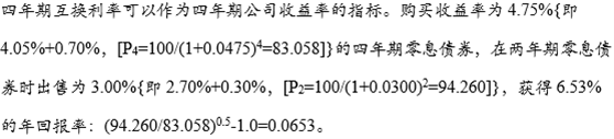 那么现在假设投资一个四年的债券,然后在到期2年时卖掉。可以理解为先投资4年期,再计算直接投资2年期债券,计算回报率。