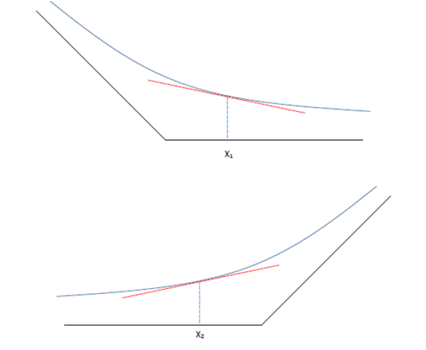 图1中红线的斜率就表示点x1和x2的delta,即call的delta为0到1之间,put的delta为-1到0之间。
