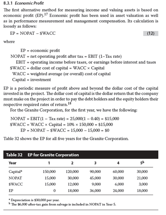 EP=NOPAT-WACC*Capital=EBIT(1-T)-WACC*Capital