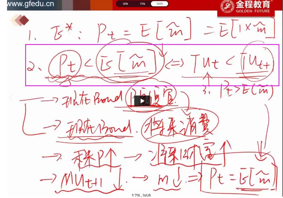 2.严格来说应该是两者的边际效用相等,即当前消费Pt元所带来的边际效用等于1年后消费1元所带来的边际效用。