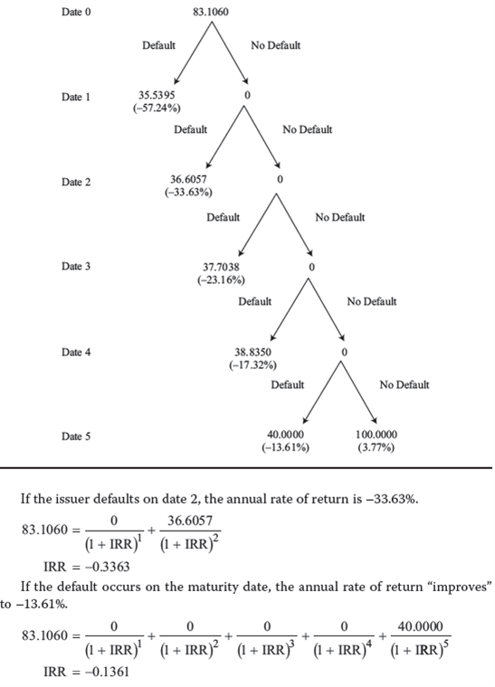 老师好,在计算不管是付息债券还是0息债券各个时点违约的IRR时,他是直接用题目中给的债券的fair value对吧?或者就像这个例题里直接问104价格对应的IRR?
