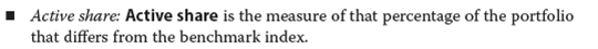 1.Active share的释义在下图中,它是指投资组合中偏离基准指数的百分比