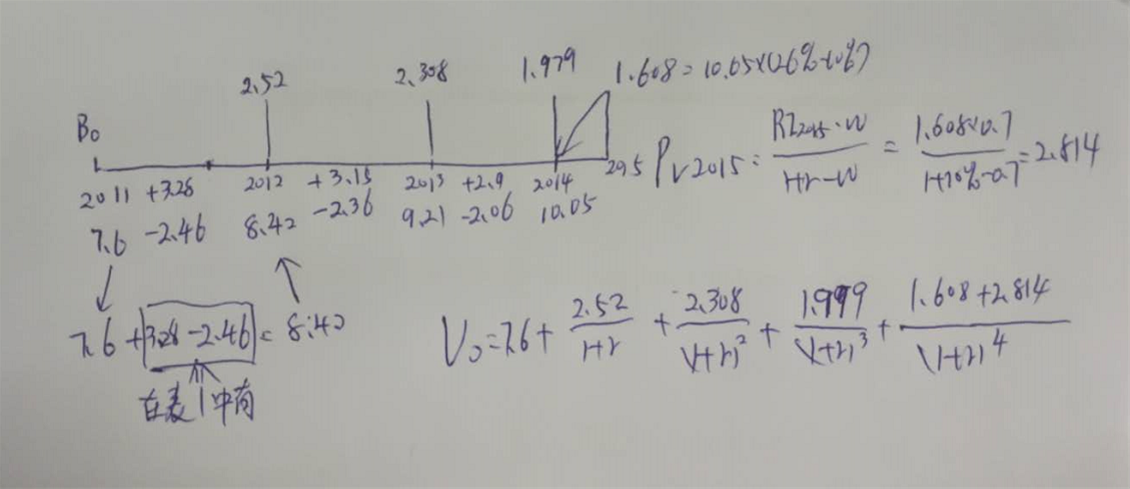 把每年的BV写在图的下面,BV0+NI-DIV=BV1,这样可以把每年初的BV算出来