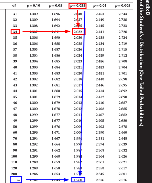 都是查t分布表得到的,原版书附录有t分布表。一个如图中的红线,一个如图中的蓝线。