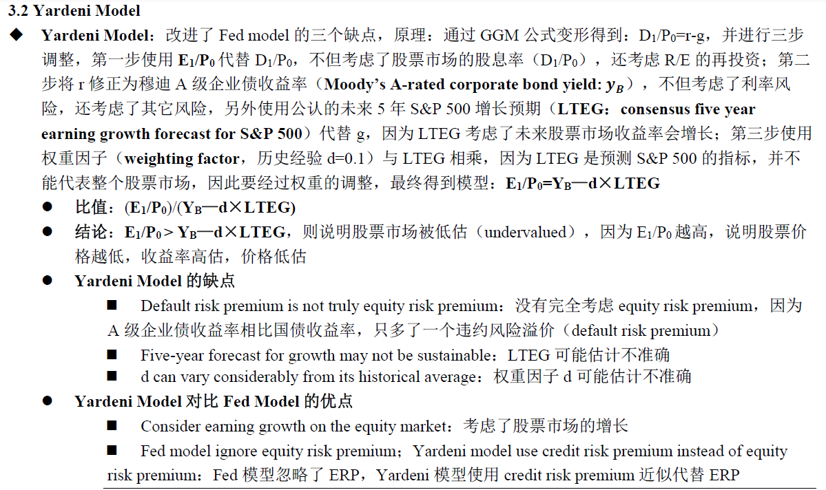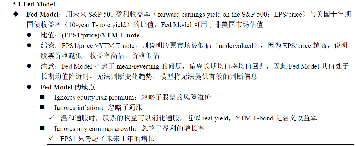 另外,fed model和yadeni model并不在考纲中,因此不需要掌握。这两个模型是CFA三级学的,但现在三级考纲也把这两个模型删除了。
