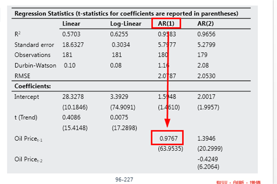 题目问的是AR(1),表中b1的系数就是0.9767。