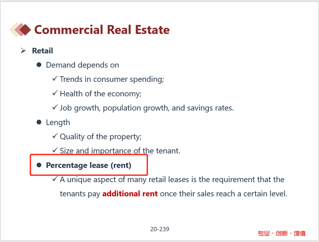 18题,percentage lease就是指sales-linked的部分。在讲义20页有相关内容。