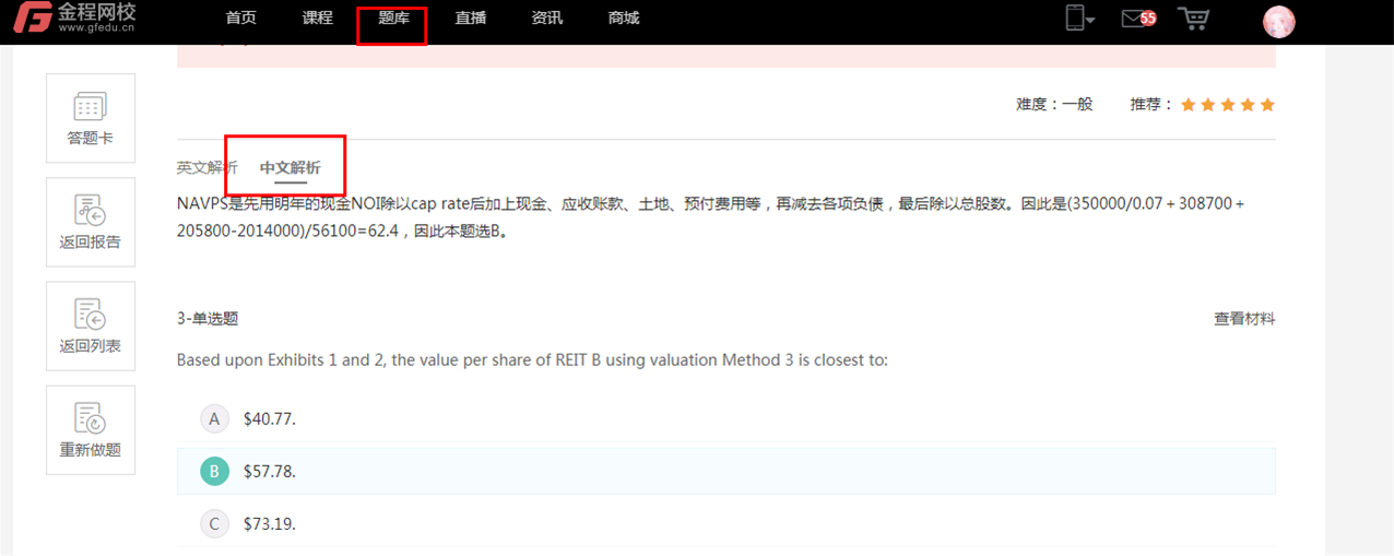 点题库,做题提交后,查看解析,会有中文和英文解析的切换,如图。
